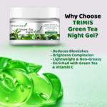 Introducing the TRIMIS Green Tea Night Gel, your go-to solution for clearer, brighter skin. This advanced night gel is specially formulated to work overnight, helping to reduce blemishes and enhance your complexion while you sleep. Infused with powerful natural ingredients like Green Tea Extract and Vitamin C, this gel is designed to fight acne and restore your skin’s natural glow. Green Tea is renowned for its antioxidant properties, which help combat free radicals and soothe the skin. This makes it an essential ingredient in the battle against blemishes and skin imperfections. Paired with Vitamin C, known for its brightening capabilities, this night gel helps diminish dark spots, leaving your skin looking more luminous and even-toned when you wake up. The TRIMIS Green Tea Night Gel is suitable for all skin types, whether you have oily, dry, or combination skin. Its lightweight gel formula absorbs quickly, providing hydration without leaving a greasy residue, ensuring a comfortable night’s sleep. Usage is simple; after cleansing your face, apply a thin layer of the night gel to your face and neck. Allow the gel to penetrate your skin as you relax and sleep. You’ll wake up to a refreshed, rejuvenated complexion that radiates health and vitality. With a net weight of 50 grams, the TRIMIS Green Tea Night Gel is designed to integrate easily into your nighttime skincare routine, providing you with the pampering your skin deserves. Say goodbye to blemishes and hello to a brighter, smoother, and more youthful-looking complexion with the TRIMIS Green Tea Night Gel. Experience the difference overnight and embrace the beauty of radiant skin every morning!