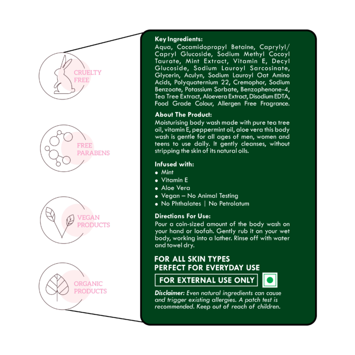 - Infused with Natural Extracts: Enriched with Tea Tree Oil, Peppermint Oil, Aloe Vera, and Vitamin E to gently cleanse, hydrate, and refresh your skin without stripping natural oils.